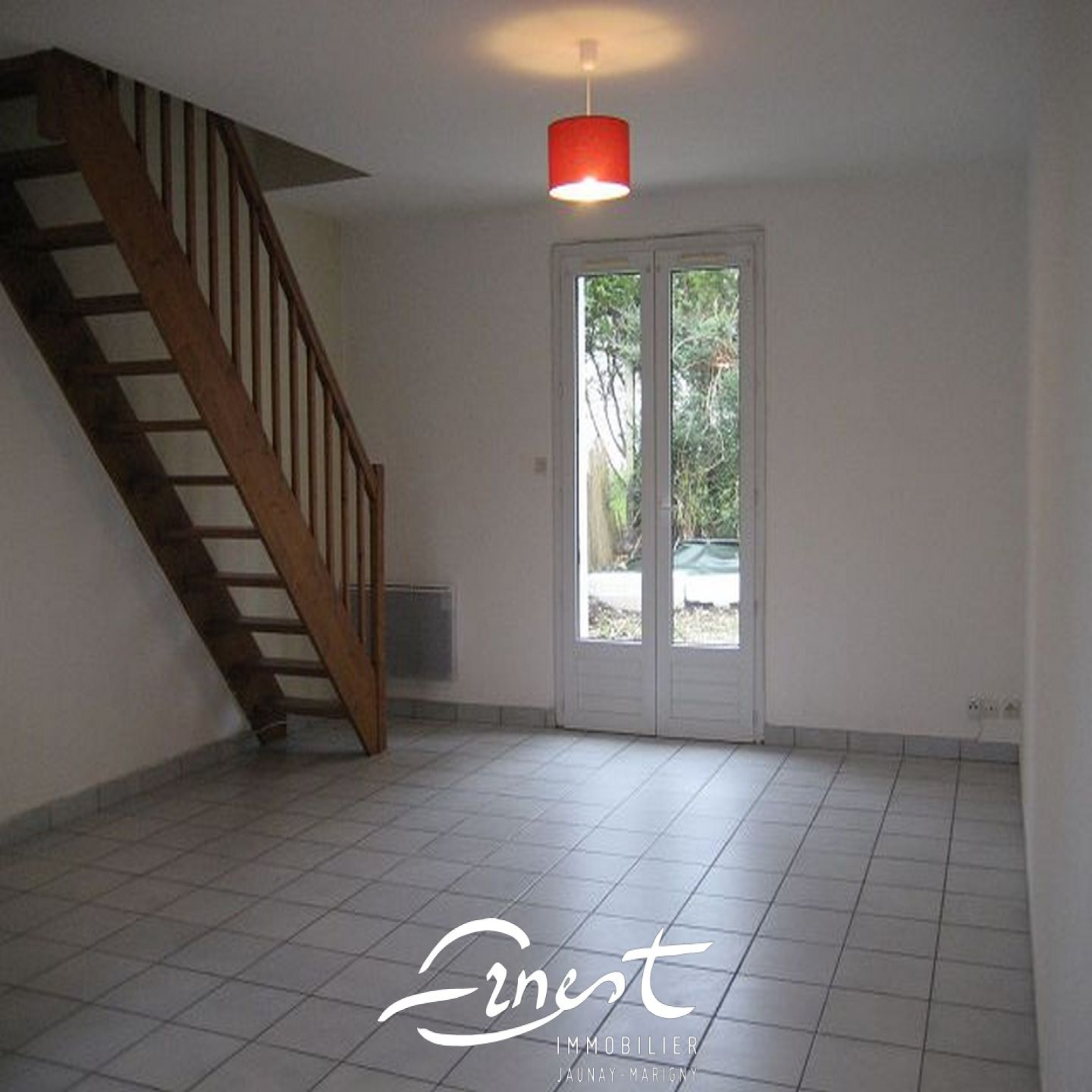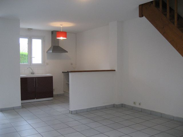 Maison/appartement de 57m² comprenant au rez-de-chaussée : entrée avec placard, séjour/salon avec coin cuisine. Au 1er étage : palier servant deux chambres et salle de bains avec wc. Débarras. Jardinet. Parking. Libre mi décembre.