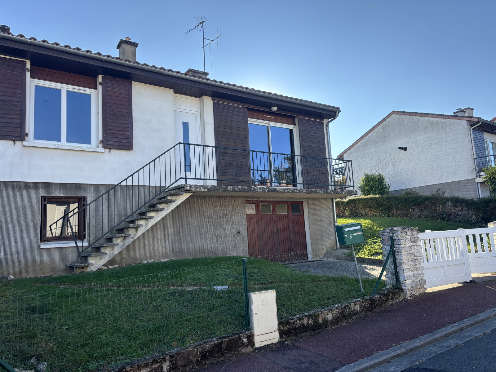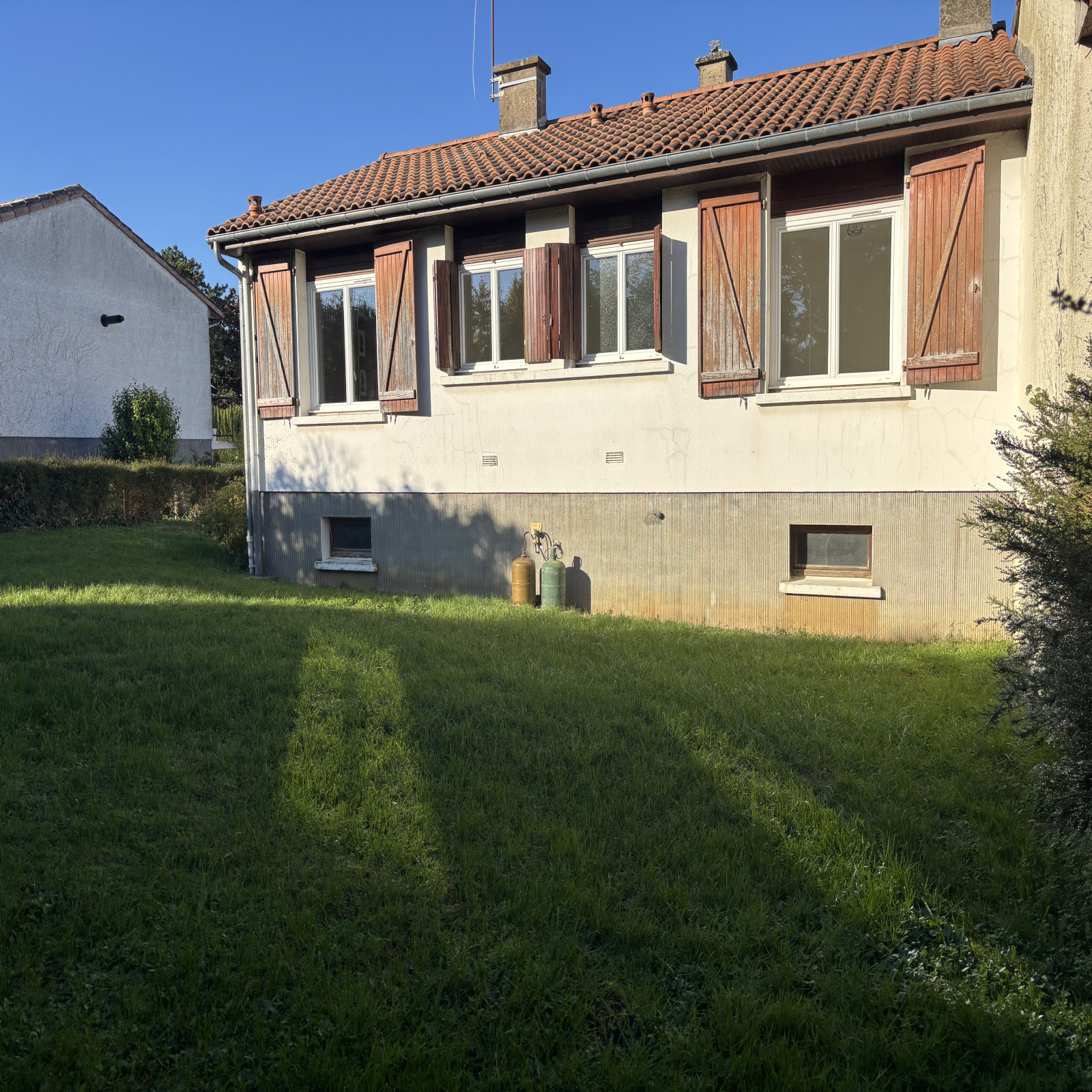 Dans quartier résidentiel, maison comprenant séjour/salon (25m²), 2 chambres, cuisine, salle de bain et wc. Au sous-sol, bureau et garage. Terrain clos. Libre.