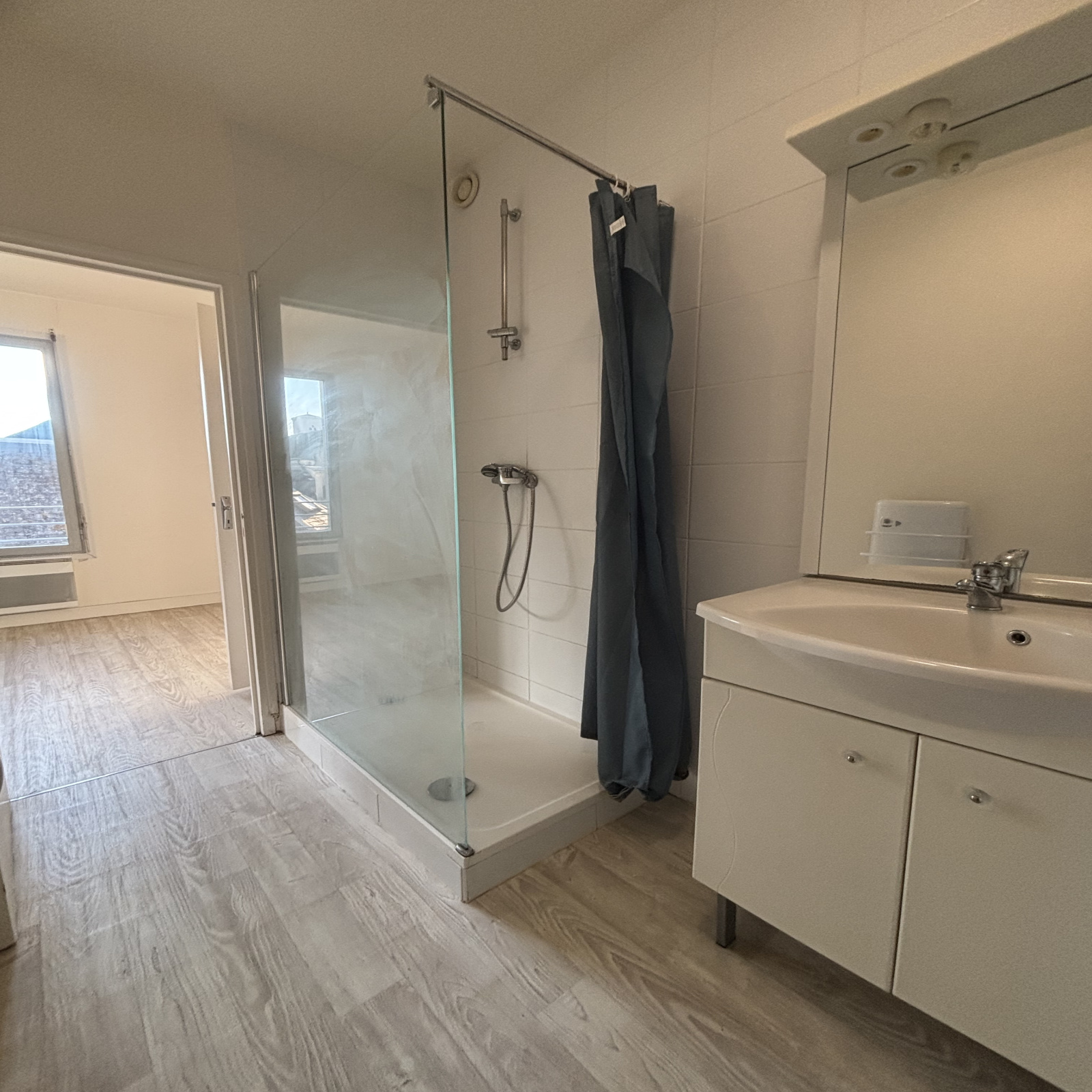 T2 idéalement situé en plein centre-ville de Châtellerault vous offre une pièce de vie lumineuse avec cuisine, une chambre ainsi qu’une salle d’eau.