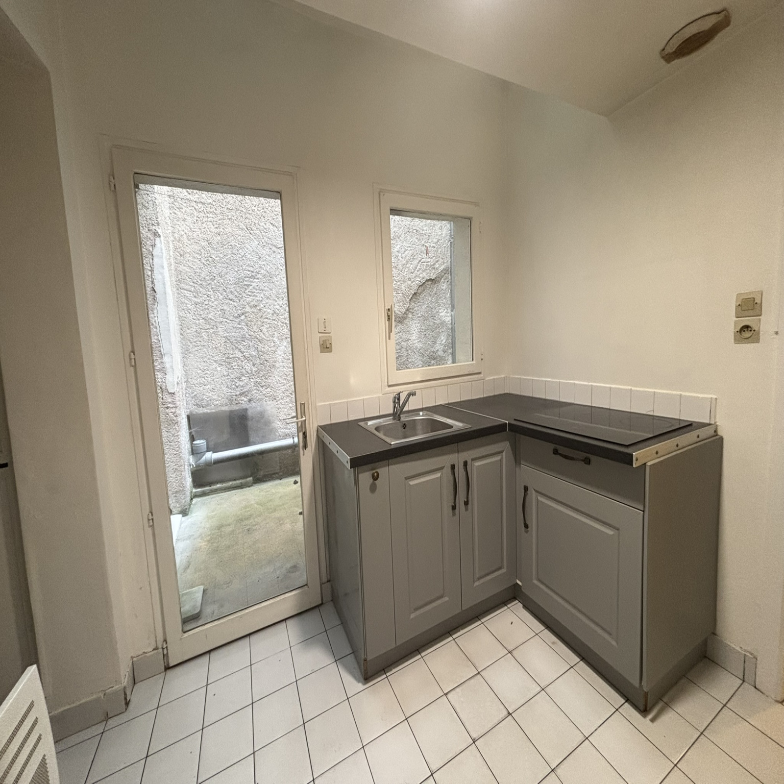 Logement en rez-de-chaussée avec courette en centre ville de Châtellerault comprenantun grand séjour, cuisine séparée, chambre, salle de bains et wc.