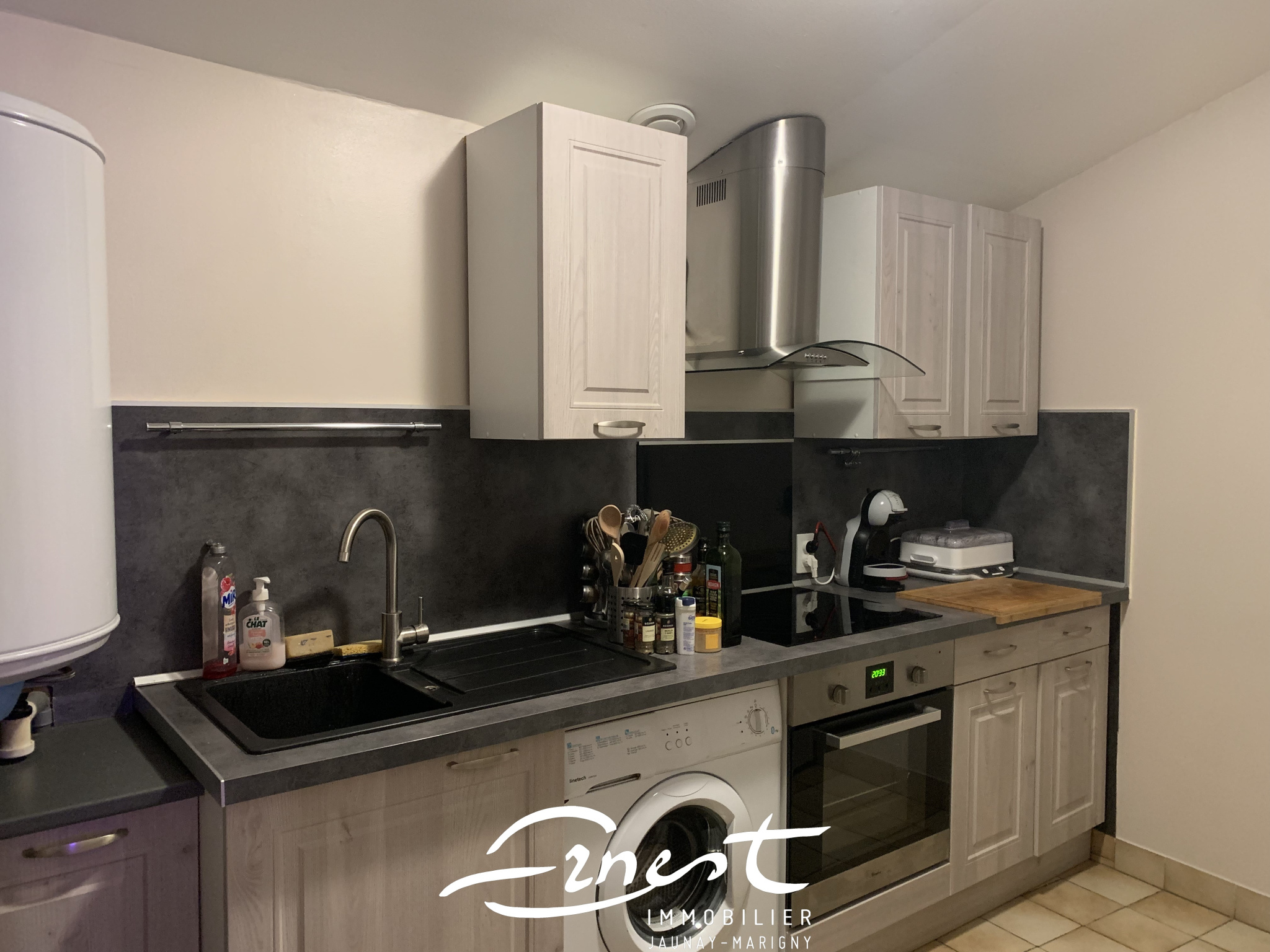 Maison de 50m2 comprenant : un séjour, une cuisine, deux chambres et un dégagement desservant sur la salle de bains ainsi que les WC.