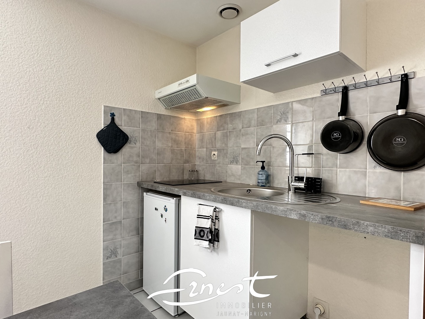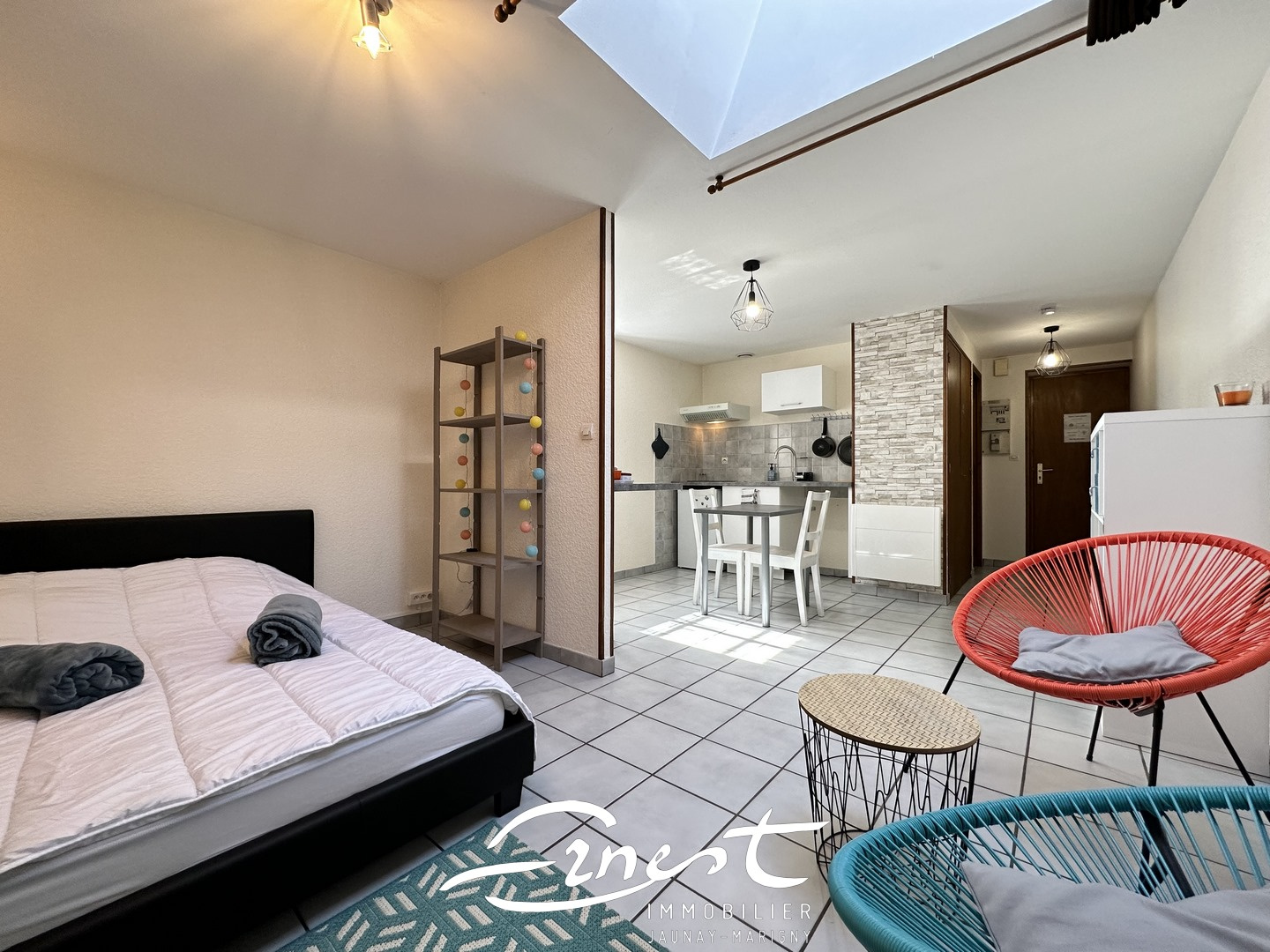 Studio comprenant : une entrée, une pièce principale avec un coin cuisine et un coin chambre, une salle d'eau avec wc.