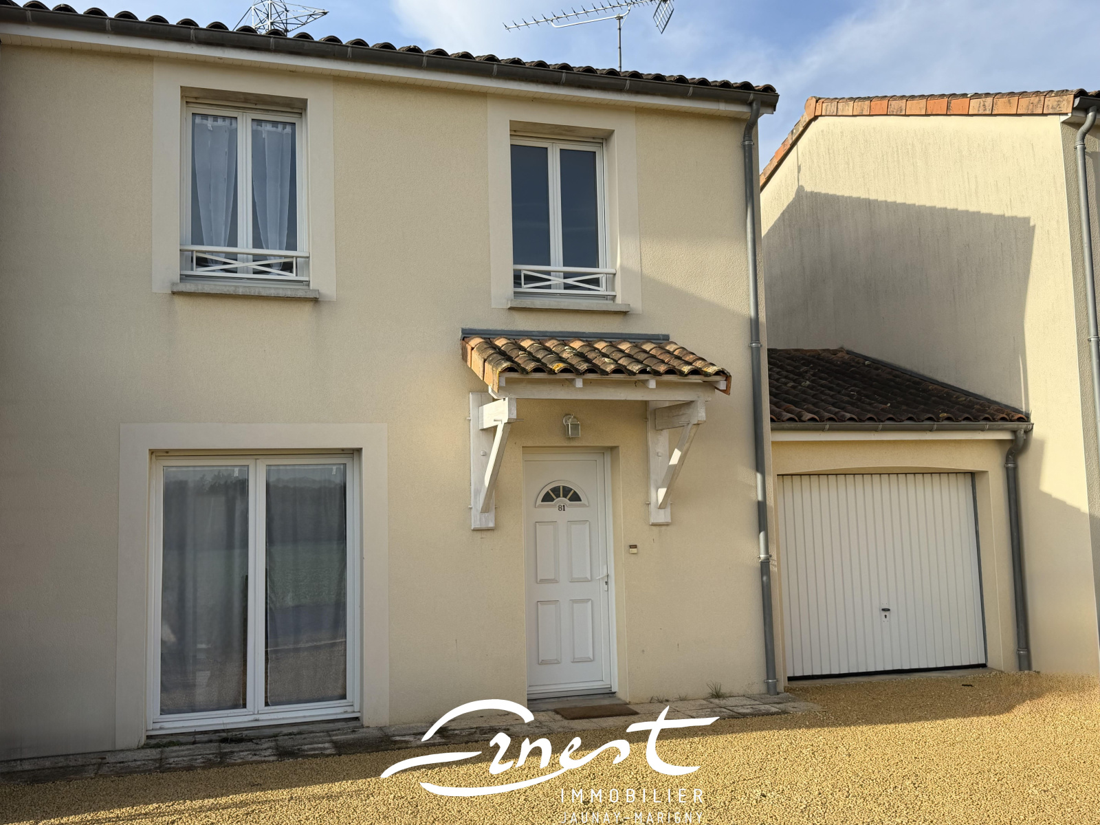 Située au 81 rue de Vert à Chasseneuil, cette maison traversante comprend un séjour/salon de 26 m² ouvrant sur une terrasse, une cuisine équipée, des WC et un garage. À l’étage, vous trouverez trois chambres ainsi qu’une salle de bains avec WC. Stationnement à l’avant et jardin clos à l’arrière. Disponible courant janvier.