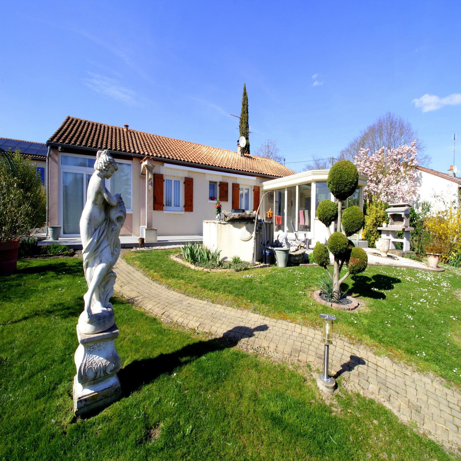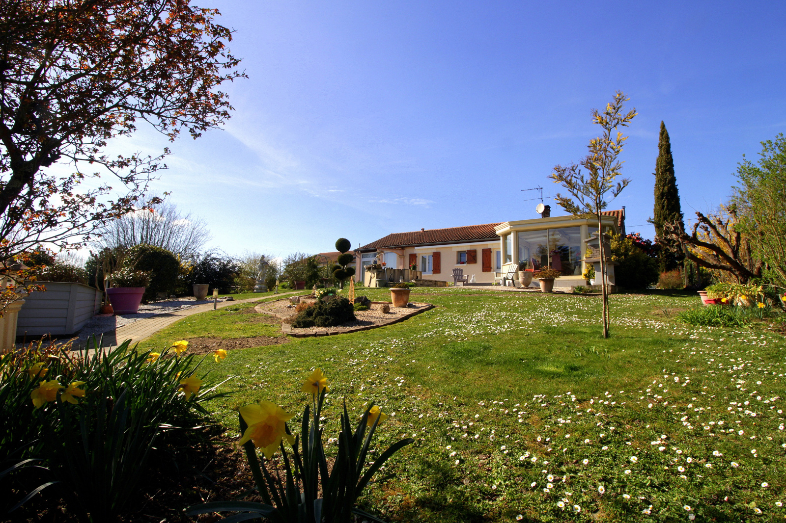 Proche Châtellerault, dans un véritable havre de verdure et de quiétude, venez découvrir cette maison de plain pied extrêmement bien entretenue et agréable à vivre. Elle s'articule autour d'une grande pièce de vie prolongée d'une véranda chauffée et isolée, véritable apport de lumière été comme hiver. La maison comporte actuellement deux chambres fermées et un bureau, mais les possibilités d'aménagement d'une ou deux chambres supplémentaires (voir plus...) sont aisément réalisables. Cette vraie maison de vacances en pleine campagne poitevine, posséde également des nombreux espaces de stockage avec un grand débarras, une buanderie, une grande cave très saine et facile d'accès ainsi qu'un grand garage et son appenti. Que dire du terrain de 2300m² ! Un ravissement pour les amateurs de nature et de calme, ils ne vous restent plus qu'à venir constater par vous même !