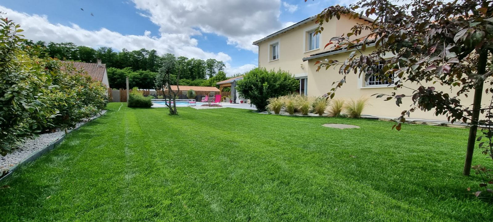 A l'extérieur, différents espaces s'offrent à vous comme une belle partie en enrobé donnant sur un vaste double garage de plus de 60m² ou encore une première terrasse sous appentis et une seconde donnant sur piscine chauffée. Le reste étant parfaitement paysagé avec goût et qualité.