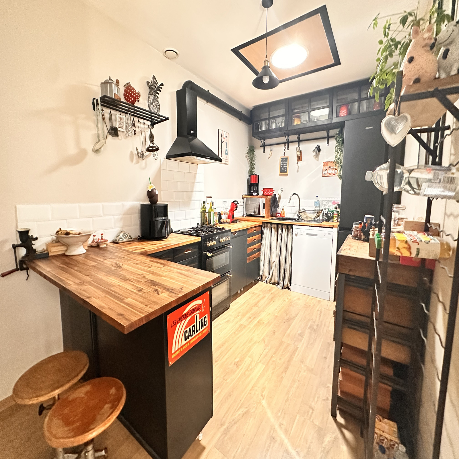 L'espace de vie se compose d'une cuisine équipée ouverte sur une grande salle à manger, idéale pour les moments de convivialité et un salon lumineux avec poêle à bois. La maison dispose d'une part d'un coin nuit avec 3 chambres, une salle de bain et un wc ; et d'autre part d'une suite parentale avec chambre et salle d'eau + wc.
