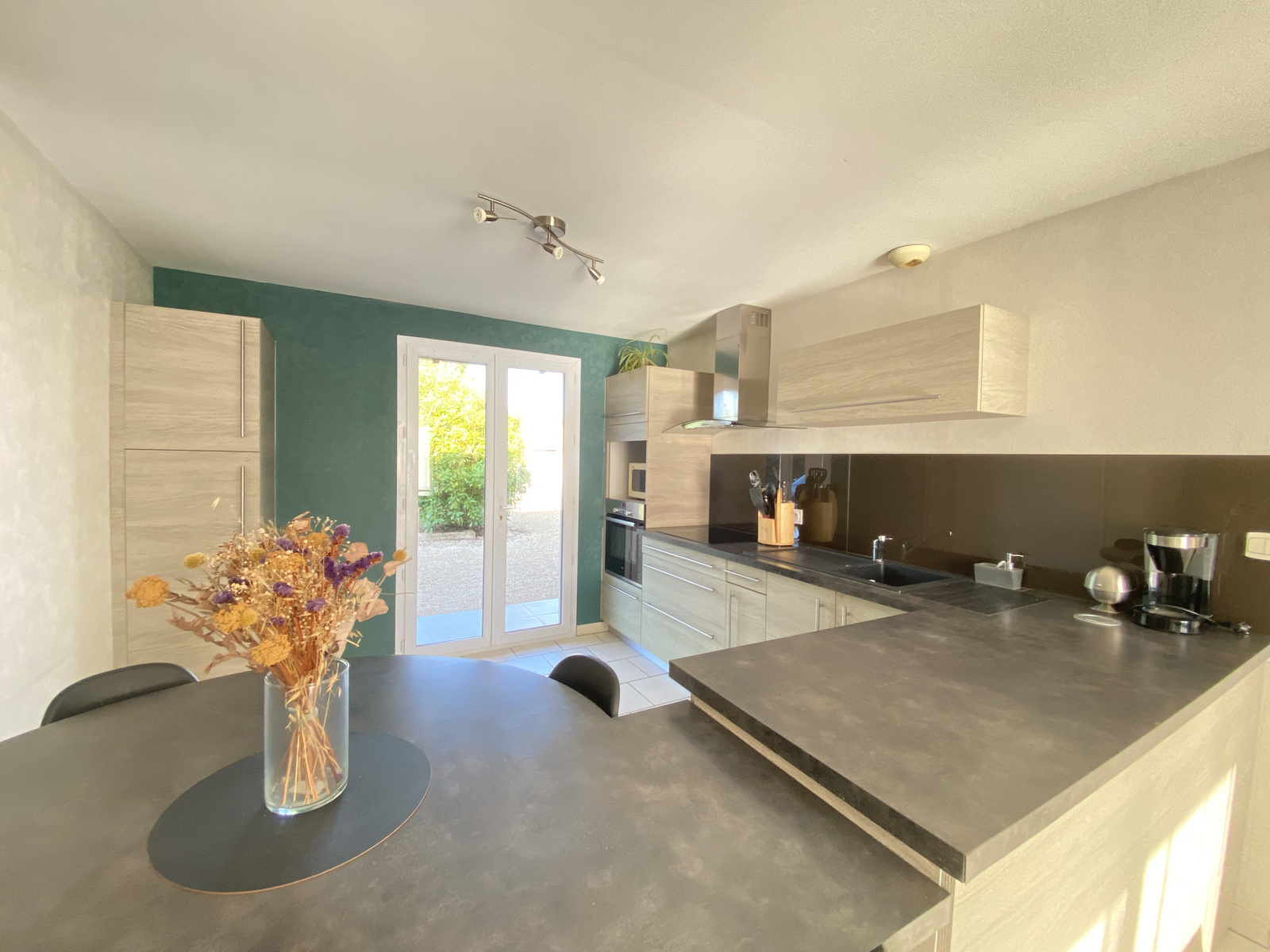 A Chasseneuil-du-Poitou, idéalement située à proximité des commodités, cette maison de plain-pied vous offrira un cadre de vie confortable et fonctionnel. D'environ 95m², cette maison comprend une entrée avec placard, une pièce de vie avec salon - séjour et cuisine aménagée, une buanderie - cellier, quatre chambres dont une avec douche, une salle de bains ainsi qu'un wc séparé. A l'extérieur, le terrain de 761m² est clos et arboré et offre un espace de stationnement sur le devant ainsi qu'un jardin avec terrasse exposée plein Est à l'arrière. A visiter sans tarder !